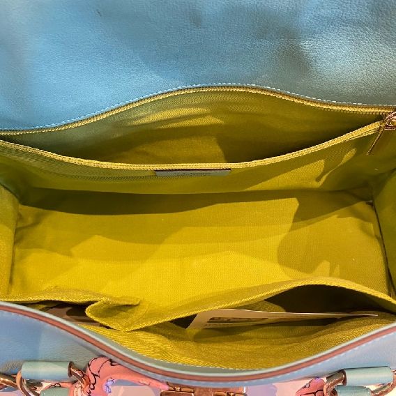 格式:銀色五金配件、釦式包口、主夾層、內置拉鍊口袋、內置開放式層*1、內置口紅袋層*1、側面蓋袋*2。